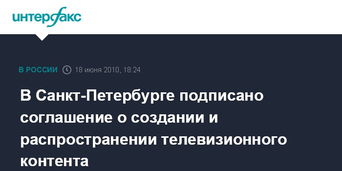 В Санкт-Петербурге подписано соглашение о создании и распространении телевизионного контента