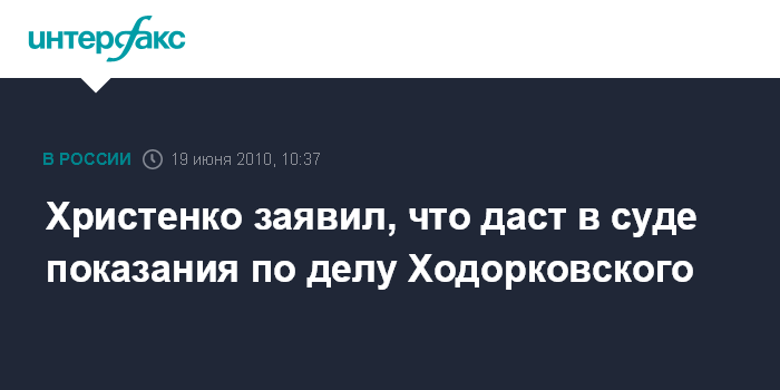 Христенко заявил, что даст в суде показания по делу Ходорковского