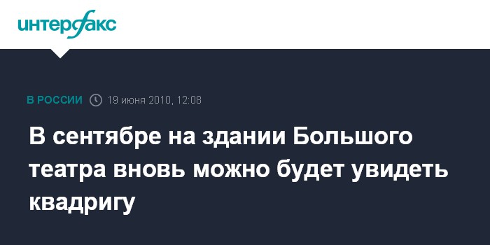 В сентябре на здании Большого театра вновь можно будет увидеть квадригу