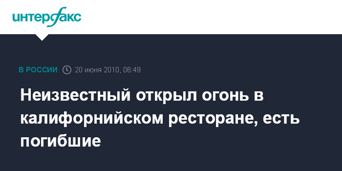 Москва. 20 июня. ИНТЕРФАКС - Двое получили ранения и трое погибли, в том числе один ребенок, в результате стрельбы, которую открыл мужчина в ресторане в калифорнийском городе Сан-Бернардино, сообщает британская телерадиовещательная корпорация Би-би-си.
