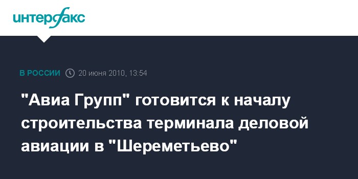 Москва. 20 июня. INTERFAX.RU - ООО "Авиа Групп", дочернее предприятие ОАО "Международный аэропорт "Шереметьево", планирует в июле-августе 2010 г. приступить к строительству нового терминала А для нужд деловой авиации, говорится в сообщении "Шереметьево". Срок строительства нового аэровокзального комплекса - один год.