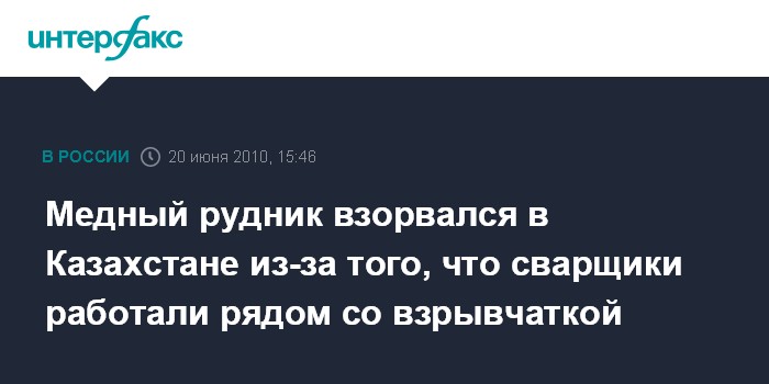 Как сообщили агентству "Интерфакс-Казахстан" в администрации рудника, рядом со сварщиками находились взрывчатые вещества. "В руднике находились взрывчатые вещества, которые необходимы для добычных работ. Предположительно, ремонтная бригада, пренебрегая элементарными правилами пожарной безопасности, начала сварочные работы рядом со взрывчатыми веществами", - сообщил представитель администрации.