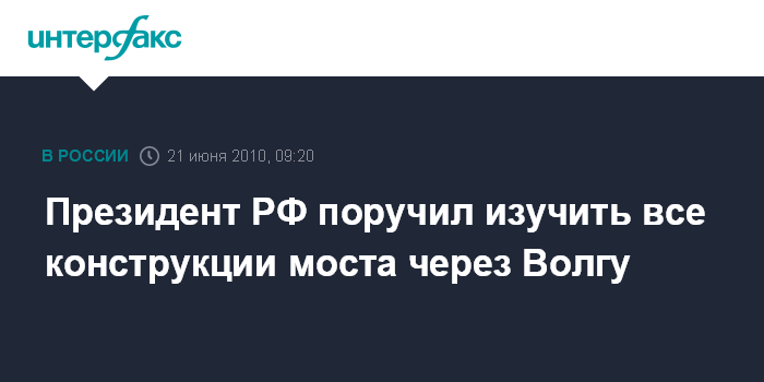 Москва. 21 июня. INTERFAX.RU - Президент России Дмитрий Медведев дал ряд поручений по итогам проверки, проведенной Генпрокуратурой РФ и Контрольным управлением президента РФ, выявившей недостатки в работе федеральных органов исполнительной власти и администрации Волгоградской области при проектировании, строительстве и эксплуатации мостового перехода через реку Волгу, сообщает в понедельник пресс-служба Кремля.