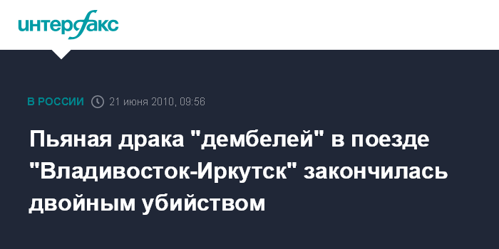 Пьяная драка "дембелей" в поезде "Владивосток-Иркутск" закончилась двойным убийством