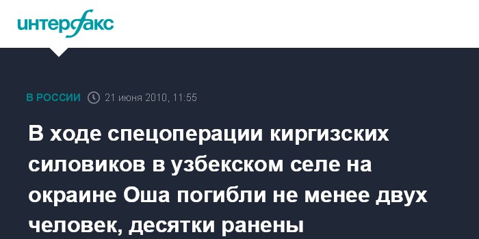 Москва. 21 июня. INTERFAX.RU - Два человека погибли и 17 пострадали в ходе "зачистки", которую провели силовые структуры Ошской области в населенном этническими узбеками селе Нариман, сообщила "Интерфаксу" в понедельник представитель офиса Human Right Watch Анна Нейстат.