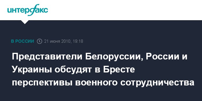Москва. 21 июня. INTERFAX.RU - Встреча руководства военных ведомств Белоруссии, Украины и России пройдет в Бресте, сообщили агентству "Интерфакс-Запад" в понедельник в министерстве обороны Белоруссии. "21-22 июня в Бресте состоится встреча руководящего состава военных ведомств Белоруссии, Украины и России. В ходе встречи участники обсудят перспективы военного сотрудничества трех стран", - сообщили в Минобороны.