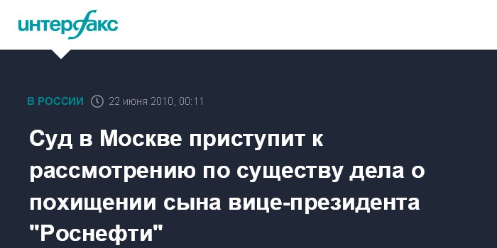 Суд в Москве приступит к рассмотрению по существу дела о похищении сына вице-президента "Роснефти"