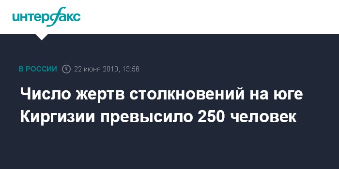 Москва. 22 июня. INTERFAX.RU - По официальным данным, количество погибших в ходе беспорядков в Ошской и Джалал-Абадской областях Киргизии превысило 250 человек, сообщили во вторник "Интерфаксу" в пресс-службе Минздрава республики.