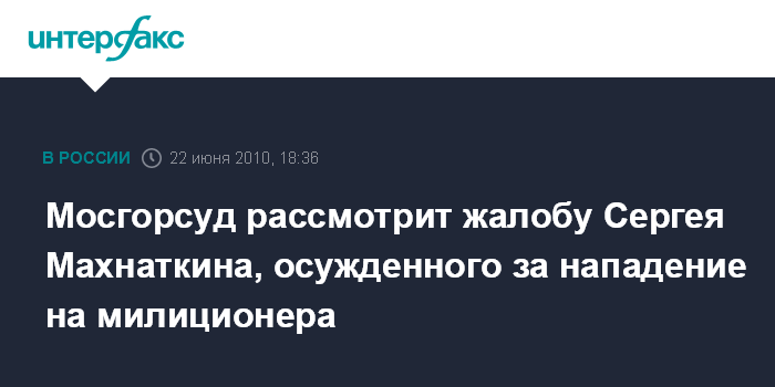 Мосгорсуд рассмотрит жалобу Сергея Махнаткина, осужденного за нападение на милиционера