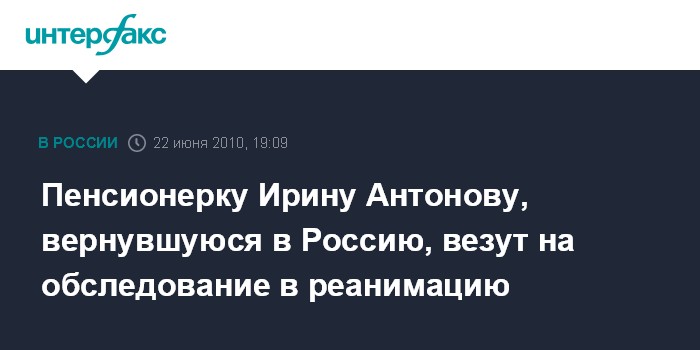 Пенсионерку Ирину Антонову, вернувшуюся в Россию, везут на обследование в реанимацию