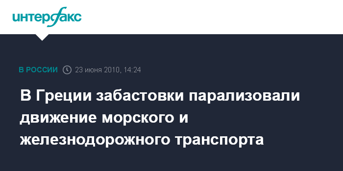 Москва. 23 июня. INTERFAX.RU - Движение поездов и морского транспорта парализовано в среду в Греции из-за забастовок сотрудников железных дорог, а также портовых работников и моряков, сообщает агентство ЭФЭ.