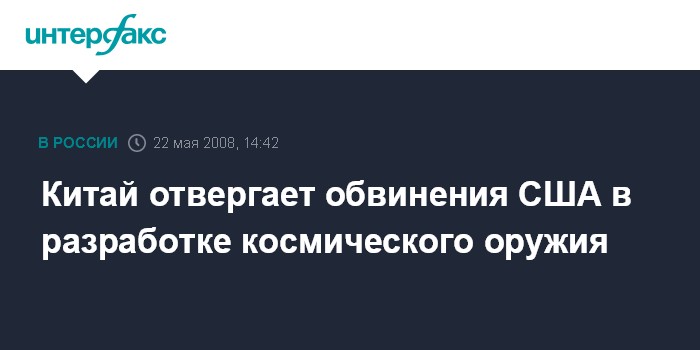 Накануне, как сообщали СМИ, представитель стратегического командования США бригадный генерал Джефри Хорн заявил, что Китай активно развивает космическое оружие, включающее средства, способные сбивать спутники.