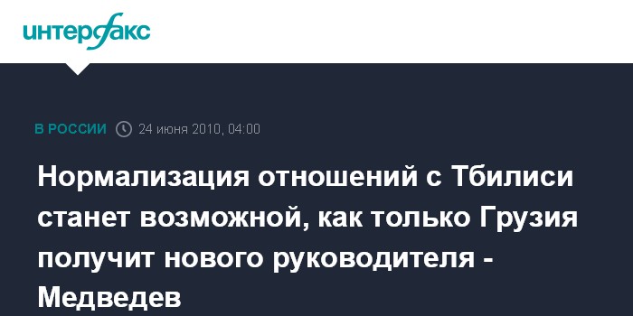 Д.Медведев подчеркнул, что ему "очень хотелось, чтобы наши отношения с Грузией вернулись в нормальное русло". "Более того, я абсолютно уверен, что это произойдет", - отметил глава государства, подчеркнув, что нет других возможностей для отношений соседей.