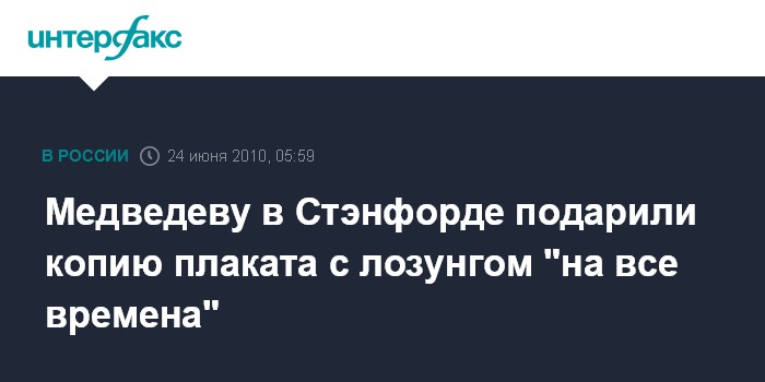 Медведеву в Стэнфорде подарили копию плаката с лозунгом "на все времена"