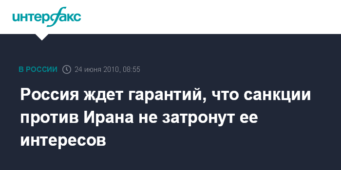 Россия ждет гарантий, что санкции против Ирана не затронут ее интересов