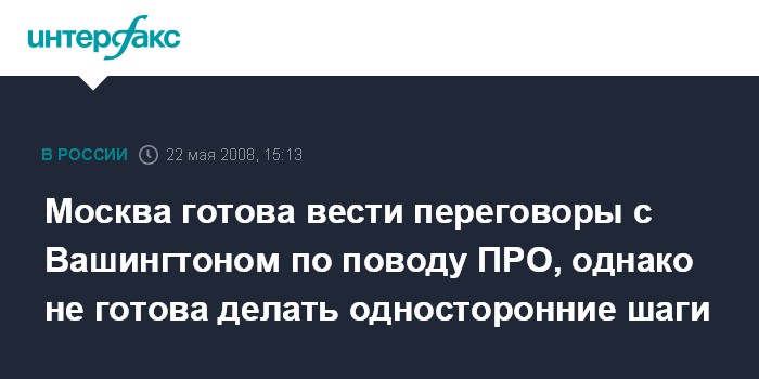 Москва готова вести переговоры с Вашингтоном по поводу ПРО, однако не готова делать односторонние шаги