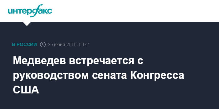 Вашингтон. 25 июня. ИНТЕРФАКС - Президент России Дмитрий Медведев, находящийся с визитом в Вашингтоне, проводит рабочую встречу с руководством сената Конгресса США.