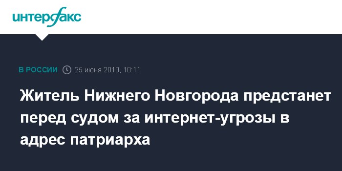 Житель Нижнего Новгорода предстанет перед судом за интернет-угрозы в адрес патриарха