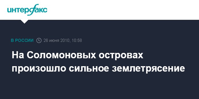 Сидней. 26 июня. ИНТЕРФАКС - Землетрясение магнитудой 6,9 балла по шкале Рихтера произошло в субботу на Соломоновых островах, в Тихом океане, сообщает агентство ЭФЭ.