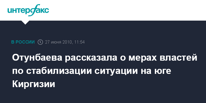 Ош. 27 июня. INTERFAX.RU - Киргизские власти будут максимально использовать методы "народной дипломатии" для стабилизации обстановки на юге республики, заявила в воскресенье председатель временного правительства Киргизии Роза Отунбаева.
