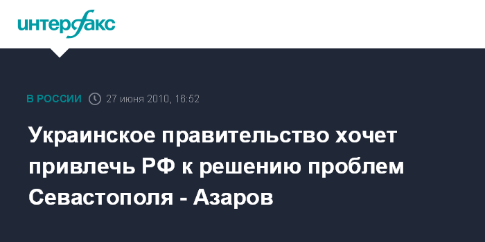 Украинское правительство хочет привлечь РФ к решению проблем Севастополя - Азаров