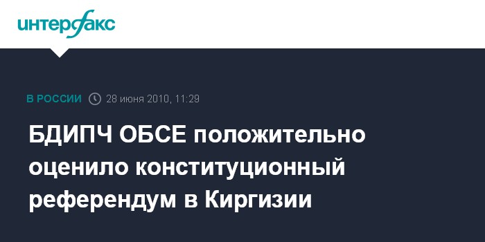 Москва. 27 июня. INTERFAX.RU – Ограниченная миссия наблюдателей БДИПЧ ОБСЕ положительно оценивает ход и итоги референдума по принятию новой Конституции Киргизии.