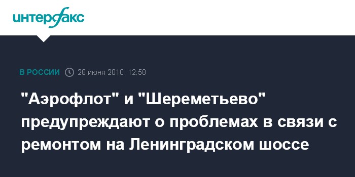 "Аэрофлот" и "Шереметьево" предупреждают о проблемах в связи с ремонтом на Ленинградском шоссе