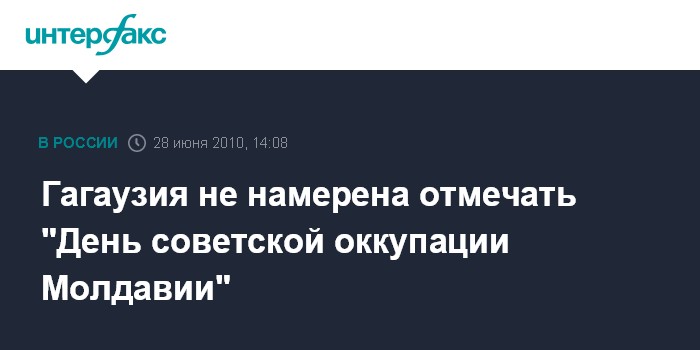 Кишинев. 28 июня. INTERFAX.RU - В Гагаузии (автономия на юге Молдавии, где проживают 140 тысяч тюркоязычных православных гагаузов) не поддерживают указ и.о. президента Молдавии Михая Гимпу, согласно которому 28 июня объявляется "Днeм Советской оккупации".