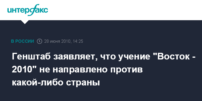 Генштаб заявляет, что учение "Восток - 2010" не направлено против какой-либо страны