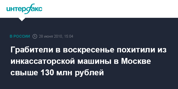 Грабители в воскресенье похитили из инкассаторской машины в Москве свыше 130 млн рублей