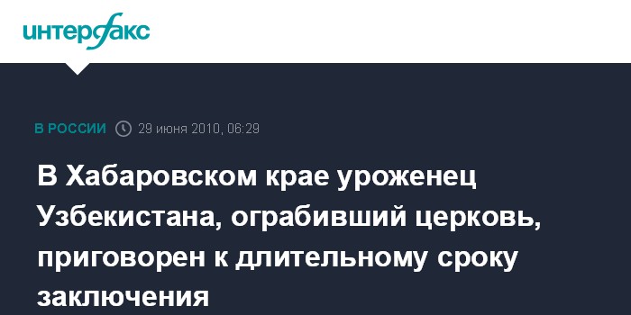 В Хабаровском крае уроженец Узбекистана, ограбивший церковь, приговорен к длительному сроку заключения