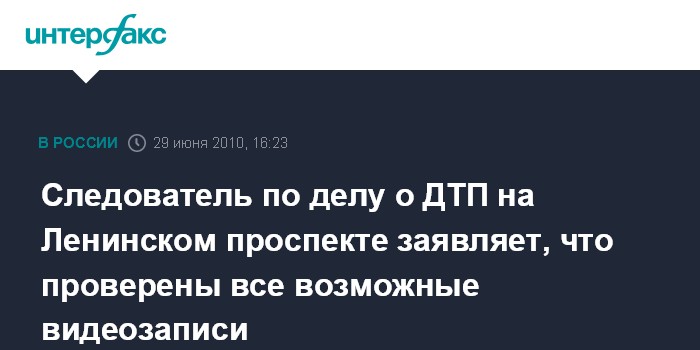 На вопрос журналистов о том, есть ли непосредственные очевидцы данного происшествия и допрошены ли они, он ответил утвердительно. "Все нормально. Идет следствие, работаем. Для меня самое главное не скорость расследования, а качество", - отметил Лагойко. Он также сообщил, что "все видеозаписи, которые можно было проверить, проверены". "Мы в рамках расследования обращались и в ФСБ, и в ФСО, и в Минобороны, и в Роскосмос. Нигде не отразился факт ДТП", - добавил Лагойко.