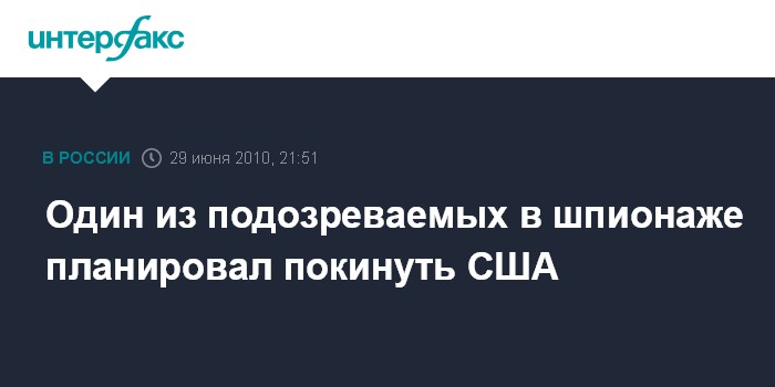 Вашингтон. 29 июня. INTERFAX.RU - ФБР США приняло решение провести операцию по аресту ряда предполагаемых российских агентов именно в воскресенье, поскольку стало известно о том, что один из них планировал навсегда покинуть США в воскресенье вечером, сообщает во вторник интернет-сайт американской газеты New York Times.