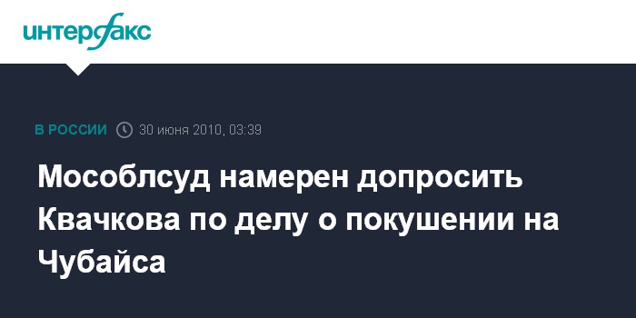 Мособлсуд намерен допросить Квачкова по делу о покушении на Чубайса