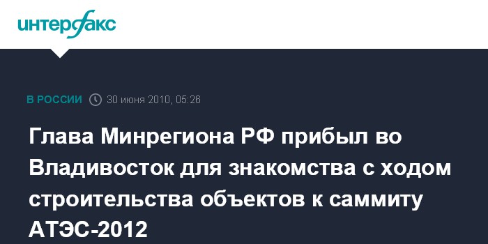 Владивосток. 30 июня. ИНТЕРФАКС-ДАЛЬНИЙ ВОСТОК - Министр регионального развития Виктор Басаргин прибыл во Владивосток, чтобы лично ознакомиться с ходом подготовки города к саммиту АТЭС-2012.