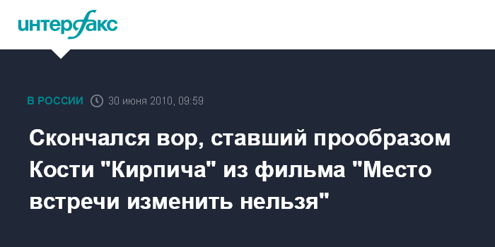 Скончался вор, ставший прообразом Кости "Кирпича" из фильма "Место встречи изменить нельзя"