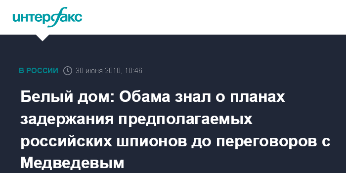 Белый дом: Обама знал о планах задержания предполагаемых российских шпионов до переговоров с Медведевым