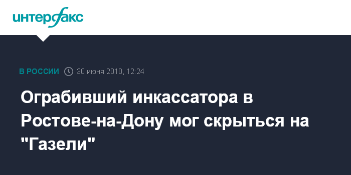 Москва. 30 июня. INTERFAX.RU - Сотрудники органов внутренних дел ведут поиск "Газели", на которой предположительно мог скрыться злоумышленник, напавший в среду на инкассатора в одном из банков Ростова-на-Дону. "По предварительным данным, грабитель мог быть вооружен пистолетом. В настоящее время эта версия проверяется. Также установлено, что он был в маске. Его возраст, предположительно, от 30 до 35 лет", - сообщил агентству "Интерфакс-Юг" источник в правоохранительных органах Ростова-на-Дону.