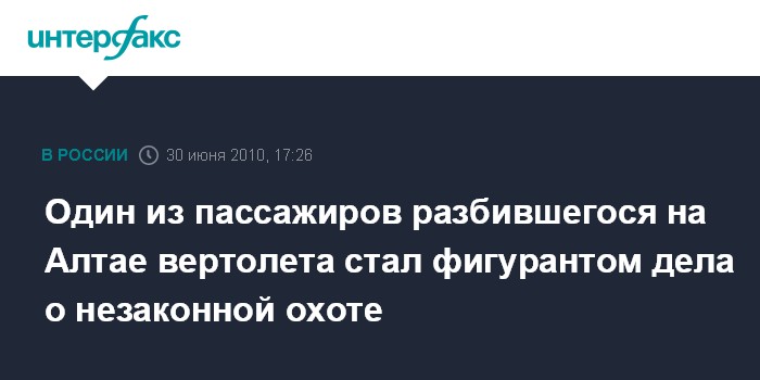 Один из пассажиров разбившегося на Алтае вертолета стал фигурантом дела о незаконной охоте