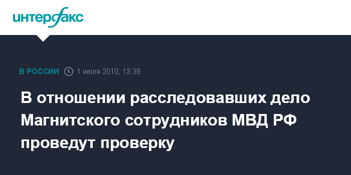 В отношении расследовавших дело Магнитского сотрудников МВД РФ проведут проверку