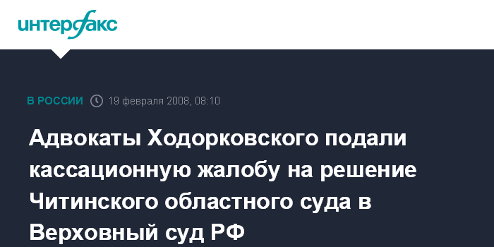 Адвокаты Ходорковского подали кассационную жалобу на решение Читинского областного суда в Верховный суд РФ
