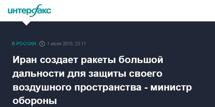 По словам министра, "сейчас Иран находится на пути создания ракет большой дальности, которые будут использоваться в целях пассивной обороны воздушного пространства".