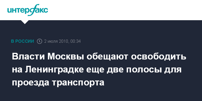 Власти Москвы обещают освободить на Ленинградке еще две полосы для проезда транспорта