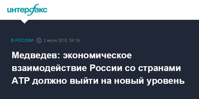 Медведев: экономическое взаимодействие России со странами АТР должно выйти на новый уровень