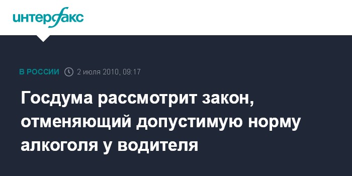 Москва. 2 июля. INTERFAX.RU - Госдума в пятницу намерена завершить работу над законопроектом, который устанавливает полный запрет на употребление алкоголя за рулем. Соответствующие поправки по инициативе президента РФ вносятся в закон "О безопасности дорожного движения", а также в Кодекс РФ об административных правонарушениях.