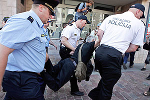 Некоторые участники намечавшегося шествия, недовольные действиями полиции, все же попытались развернуть свои плакаты и отправиться в путь, но в результате были задержаны. Двух участников доставили в полицейский микроавтобус, причем одного пришлось нести, так как он активно сопротивлялся.