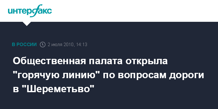 Москва. 2 июля. INTERFAX.RU - Рабочая группа Общественной палаты по защите прав туристов объявила об открытии "горячей линии" по вопросам движения транспорта до московского международного аэропорта "Шереметьево".