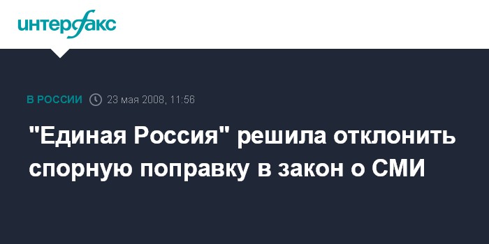 "Принято решение поправку отклонить, сформировать рабочую группу по подготовке предложений к закону с приглашением представителей СМИ", - говорится в сообщении, опубликованном на официальном сайте "Единой России".