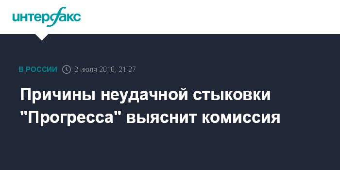 Москва. 2 июля. INTERFAX.RU - Для выяснения причин сбоя и неудачной стыковки космического грузового корабля "Прогресс-М-06М" с Международной космической станцией будет создана комиссия, в которую войдут сотрудники ракетно-космической корпорации "Энергия" и представители Центрального научно-исследовательского института машиностроения.