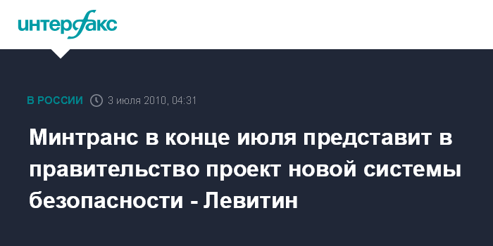 Минтранс в конце июля представит в правительство проект новой системы безопасности - Левитин